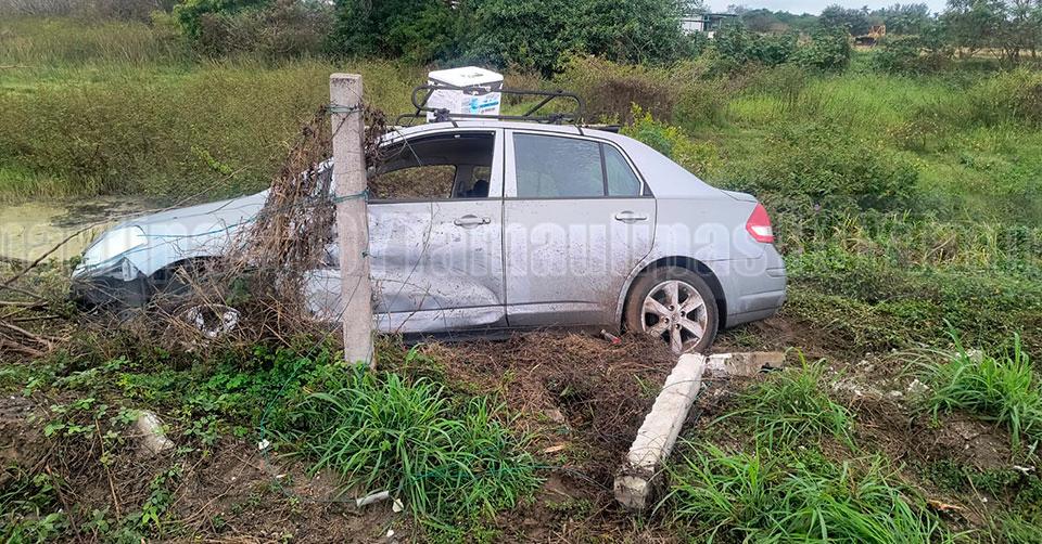 Ciudad Madero, Tamaulipas. - Un automóvil compacto terminó fuera del camino, después de colisionar con una camioneta todo-terreno en el Corredor Urbano "Luis Donaldo Colosio", percance que dejó a un joven lesionado.