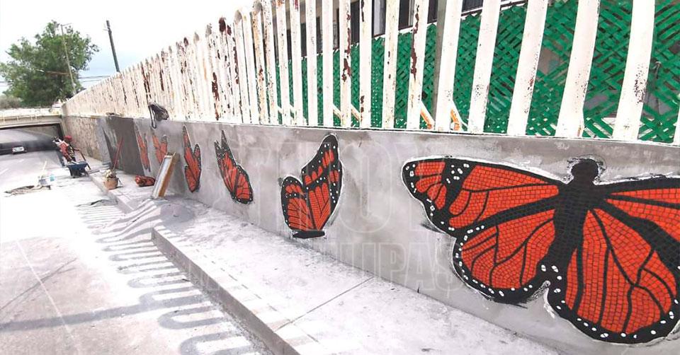 Reynosa, Tamaulipas. - Usuarios de redes sociales denunciaron la destrucción que autoridades municipales están realizando en las paredes del paso a desnivel número 2 en Reynosa, bajo el pretexto de embellecer la ciudad con murales.