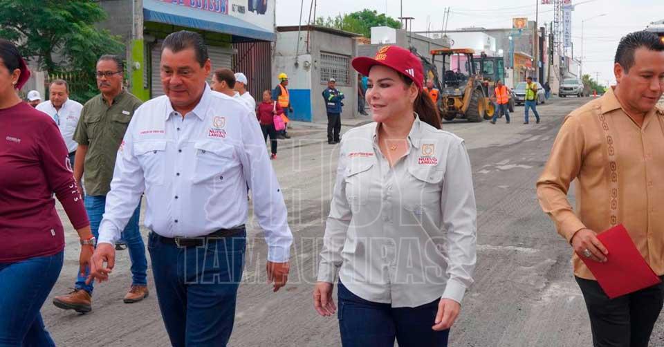 Nuevo Laredo, Tamaulipas.-Lilia Canturosas Villarreal y autoridades municipales dieron el banderazo de arranque y realizaron la entrega de importantes obras de recarpeteo asfáltico en diversos tramos de la calle Iglesias Calderón, en la colonia Francisco Villa.