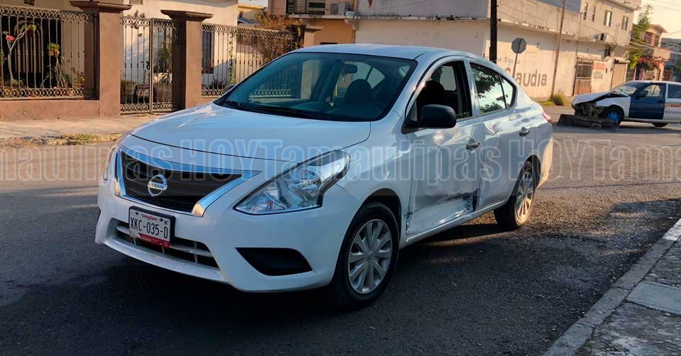 Ciudad Victoria, Tamaulipas. – Un accidente vial se registró en el crucero del 0 Matamoros, luego de que el conductor de un Nissan Versa no respetara el alto obligatorio, provocando un choque con un Nissan Tsuru que circulaba con preferencia de paso sobre la calle 0.