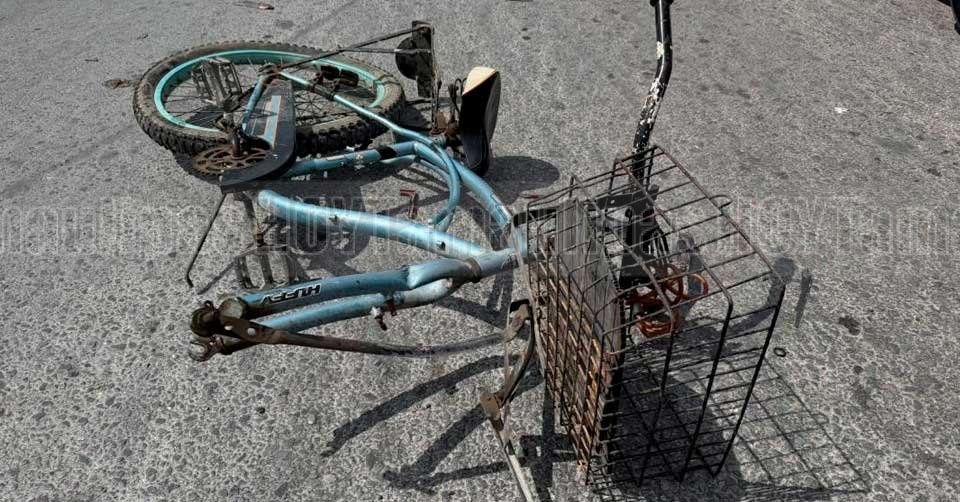 Tras el fuerte impacto, la bicicleta del hombre quedó partida en varios pedazos, mientras que el adulto mayor quedó tendido sobre la vialidad en estado crítico.