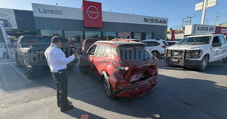 Nuevo Laredo, Tamaulipas. — Un hombre de 36 años provocó un accidente frente a una agencia automotriz en la avenida Reforma de Nuevo Laredo, causando daños materiales cuantiosos.