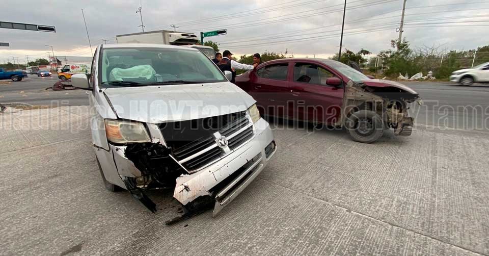 Ciudad Victoria, Tamaulipas.– La mañana de este día se registró un choque entre una camioneta Grand Caravan y un automóvil Dodge Attitude en el cruce de la avenida De la Unidad con Carlos Adrián Avilés.
