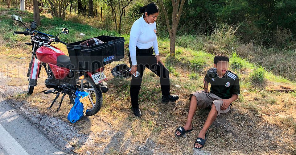 De acuerdo con los primeros reportes, el menor circulaba en una motocicleta Italika 125 cuando las bolsas con prendas se enredaron en el rin, lo que provocó que la unidad se detuviera de forma repentina y lo proyectara contra el pavimento.