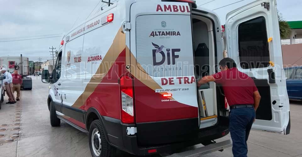 Altamira, Tamaulipas.-Con una grave lesión en su pie derecho resultó un adulto mayor, al ser atropellado esta mañana por un tractocamión, siendo trasladado de urgencia a un hospital por personal del Sistema DIF Altamira.