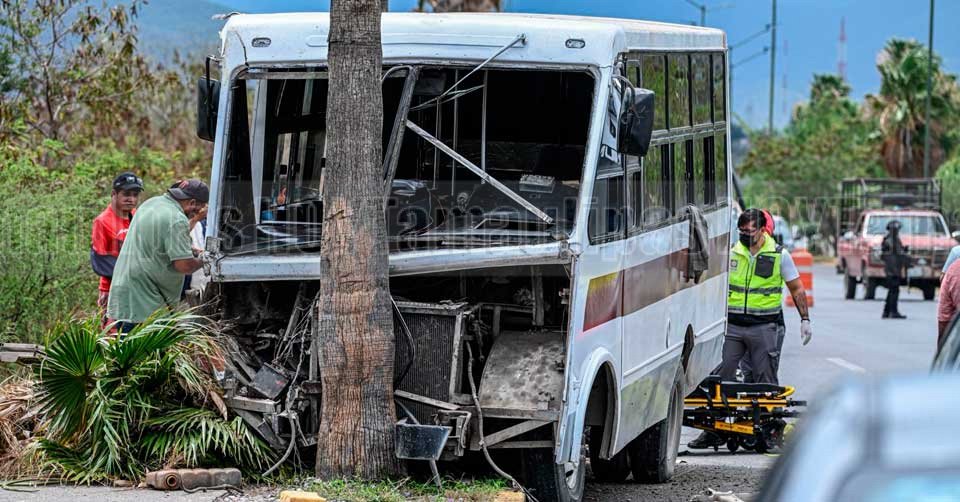 Ciudad Victoria, Tamaulipas. – Un total de 12 personas resultaron lesionadas luego de que un microbús del transporte público se estrelló contra una palmera en la ampliación del Bulevar Praxedis Balboa, a la altura de la colonia Pepenadores, en Ciudad Victoria.