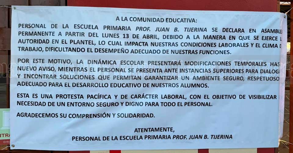 El personal subrayó que la suspensión de labores busca restablecer condiciones adecuadas de trabajo y garantizar el correcto funcionamiento de la escuela, por lo que reiteraron el llamado a las autoridades educativas para revisar el caso y dar una solución al conflicto.