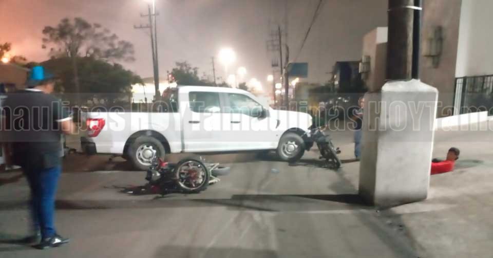 Pareja lesionada tras choque entre motos y camioneta en Ciudad Madero