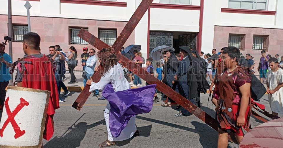 Por primera vez, en la escenificación del viacrucis, participaron fieles de la Basílica de Nuestra Señora del Refugio, quienes se sumaron a la comunidad de la catedral para vivir juntos esta representación. 12:15:07