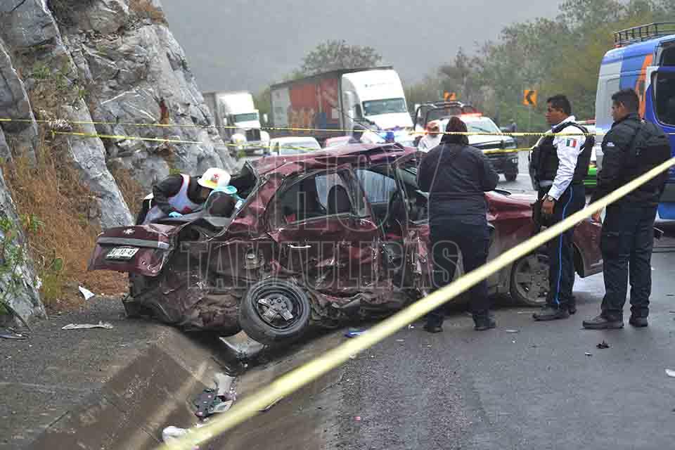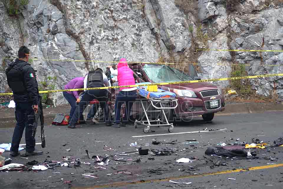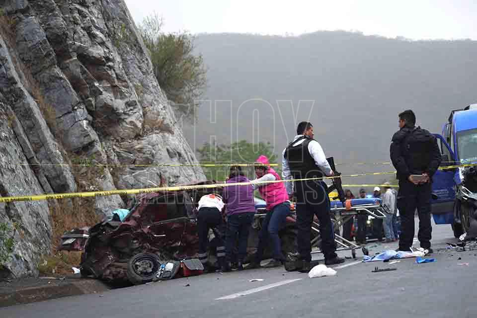 Tres muertos y dos lesionados fue el saldo de un choque al derrapar un automóvil y chocar de frente contra una camioneta de transporte en el kilómetro 13 de la carretera Rumbo Nuevo