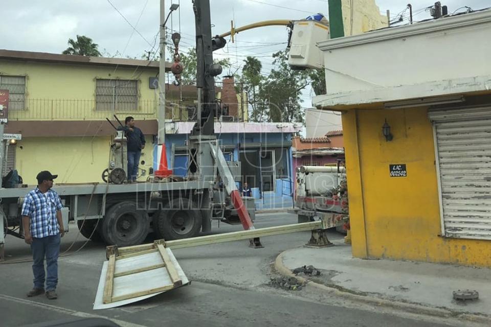 Debido a la corrosión que presentaban, varios postes fueron derribados por los fuertes vientos que se sintieron en Reynosa