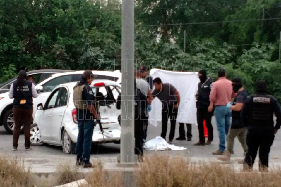 Un enfrentamiento y persecución entre grupos antagónicos que se pelean el control de la plaza, dejó esta tarde un presunto delincuente muerto sobre el Libramiento a Monterrey en Reynosa, Tamaulipas