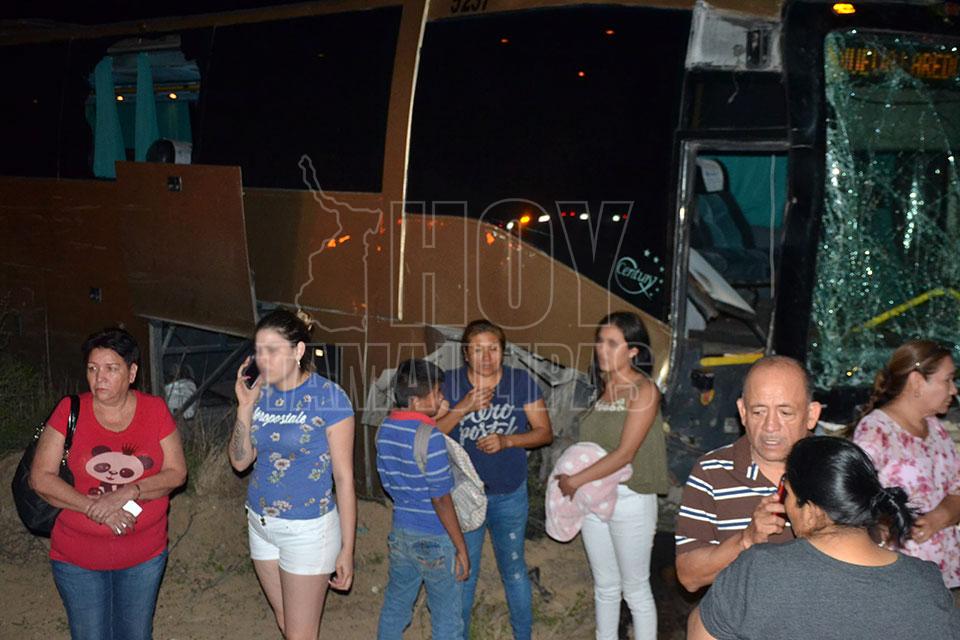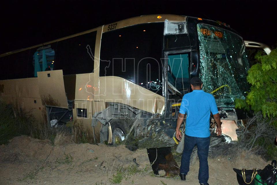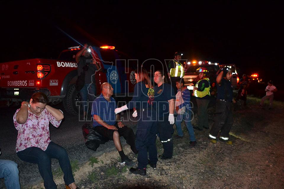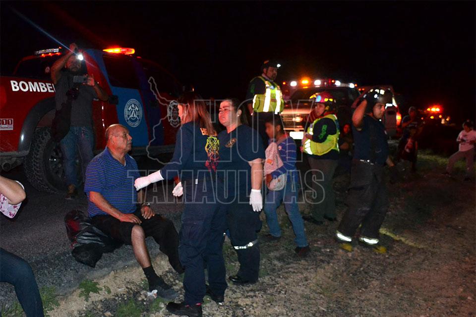 Cinco personas con lesiones leves, daños materiales de consideración y la movilización de los cuerpos de emergencia de Nuevo Laredo, dejó como saldo un accidente en la Carretera a Anáhuac, en Nuevo Laredo, entre un autobús, una camioneta y un automóvil.