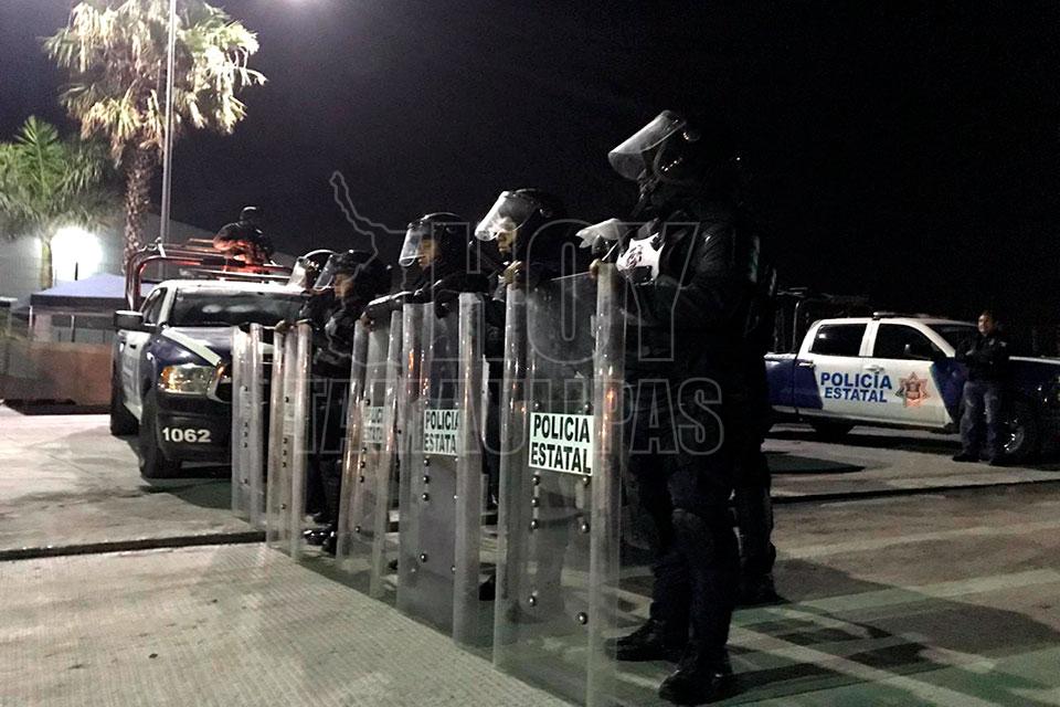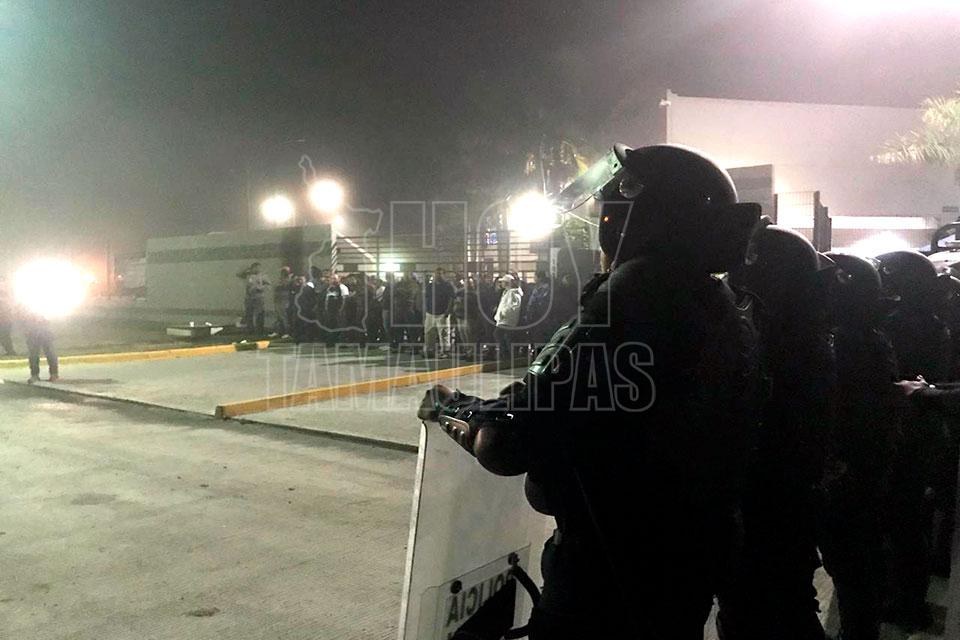 Un centenar de policías antimotines de la Secretaría de Seguridad Pública estatal impidieron esta madrugada que decenas de personas se apoderaran de los accesos de la maquiladora Avances Científicos instalada en Matamoros, Tamaulipas