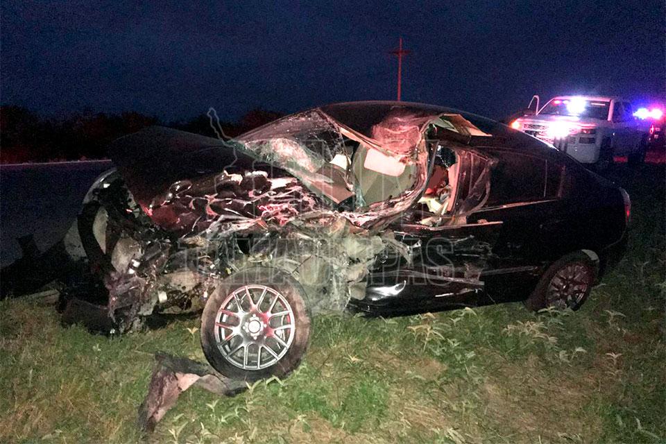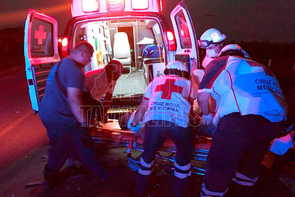 Un originario de Tampico, Tamaulipas, falleció prensado al chocar de frente contra una camioneta en la carretera al Puerto Matamoros, mientras que la mujer que lo acompañaba salió herida