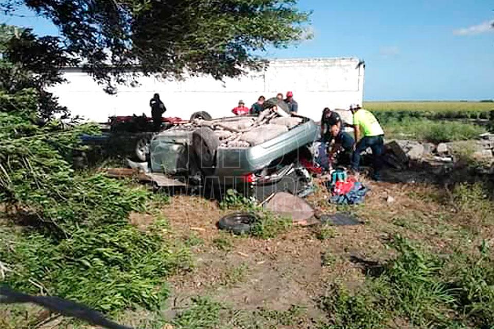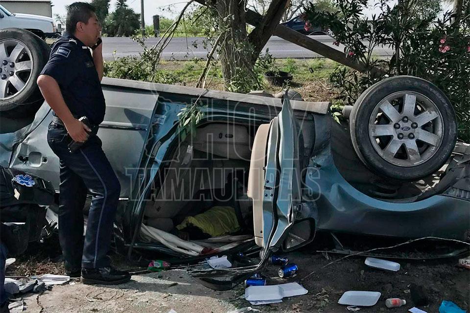 Una mujer y un jovencito murieron esta mañana, luego de volcar el automóvil en el que se desplazaban, mientras que un niño de nueve años fue llevado de emergencia y en código rojo a un hospital de Matamoros, Tamaulipas