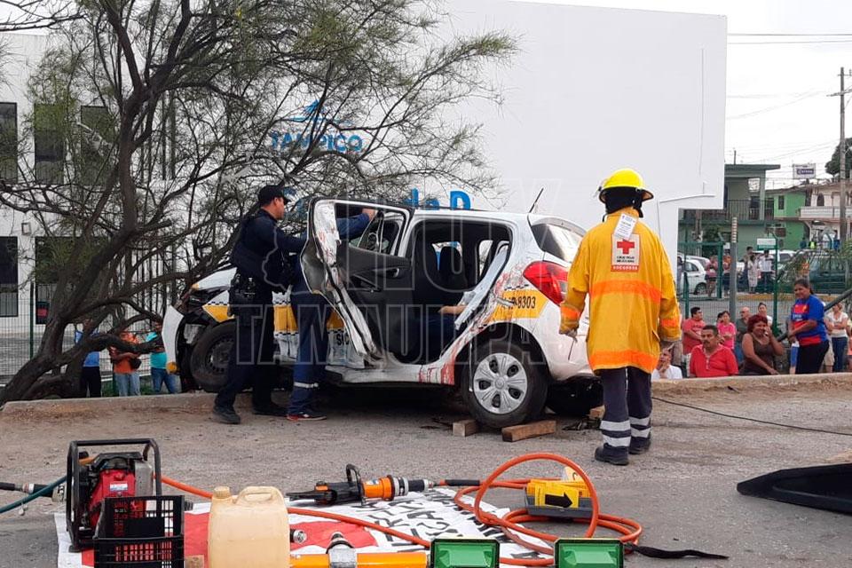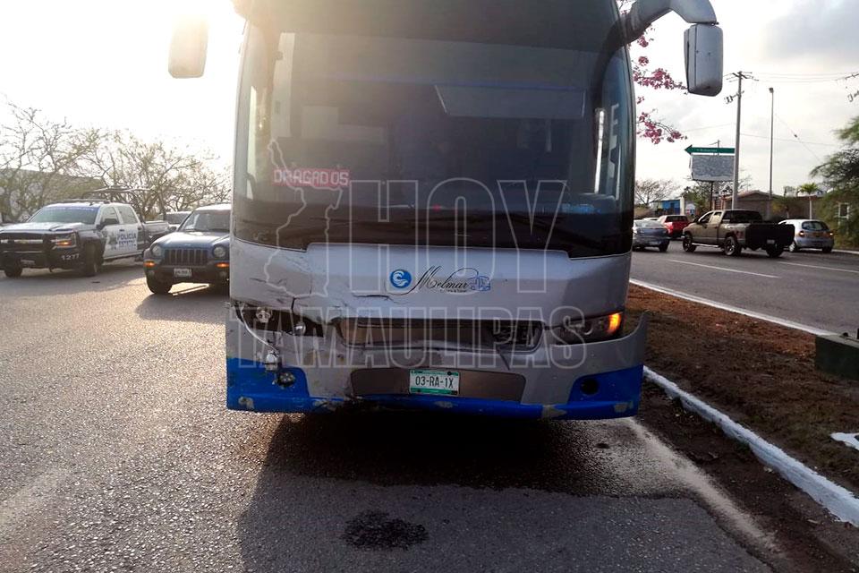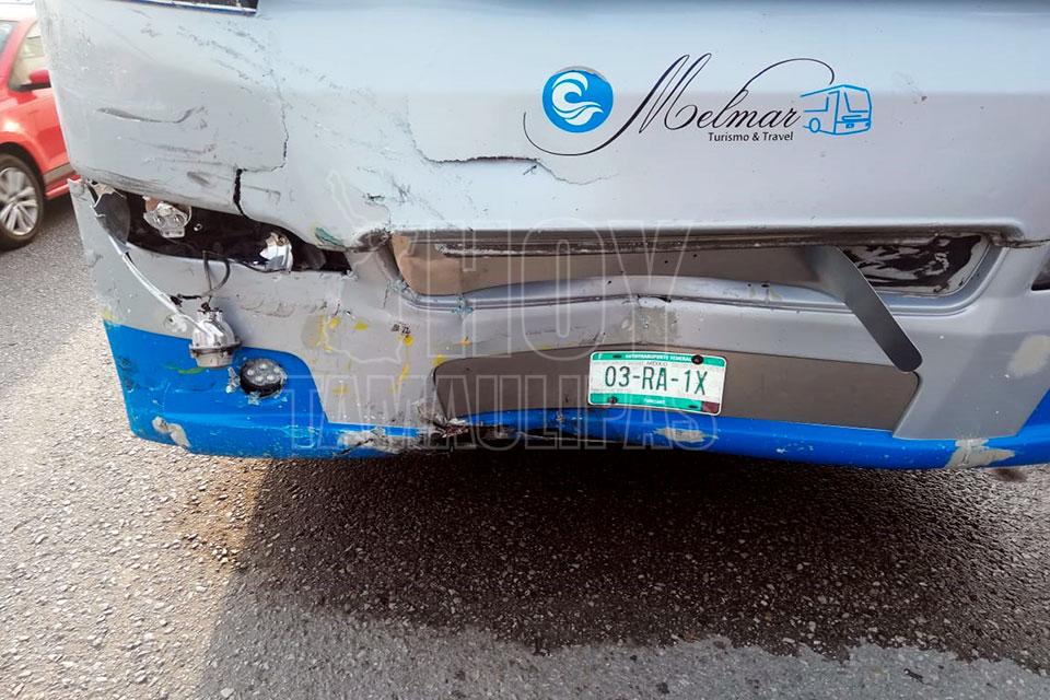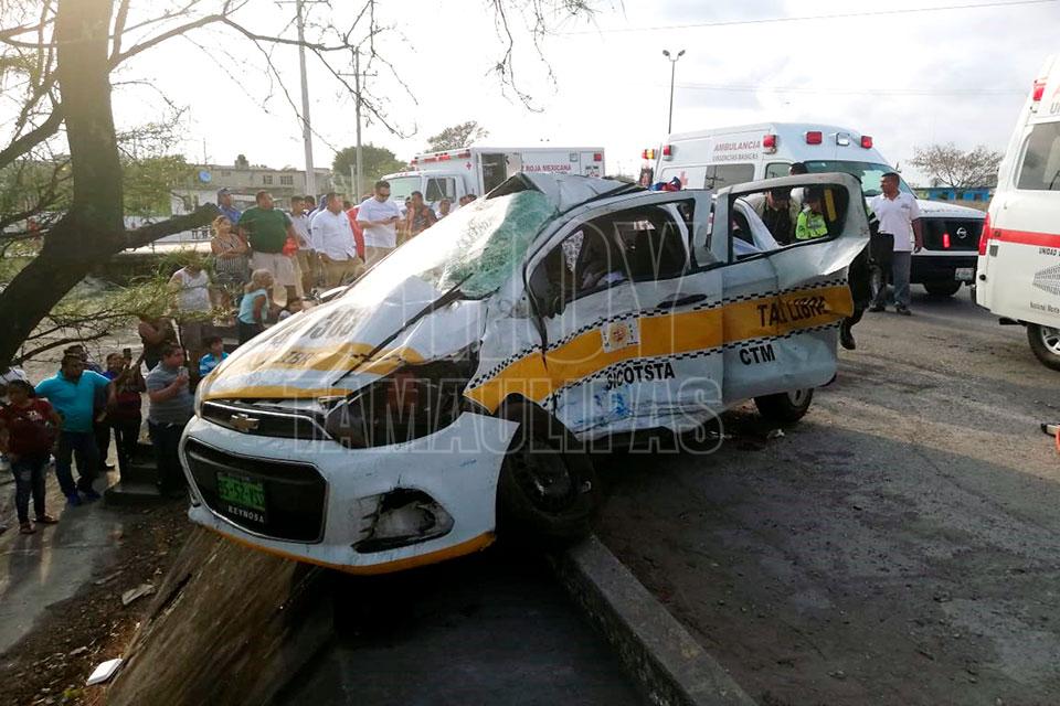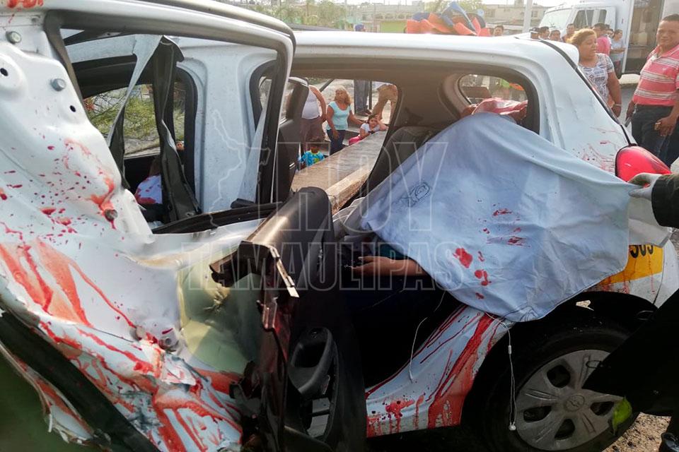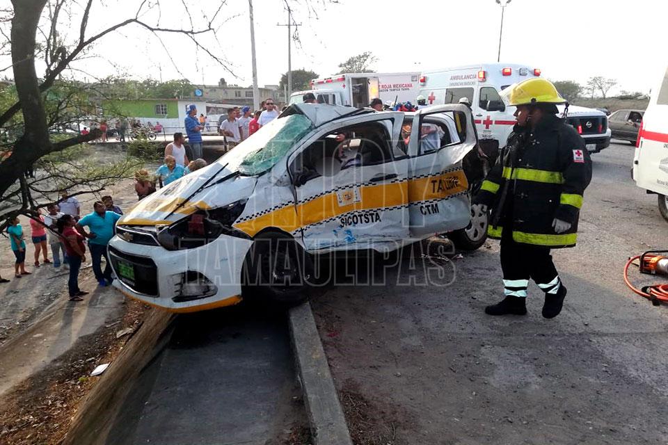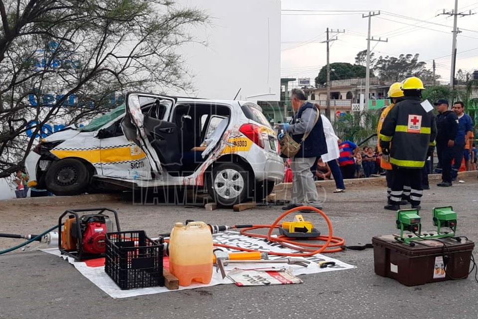 Tres personas fallecidas y daños de consideración fue el saldo de un fuerte choque registrado esta tarde en la carretera Tampico-Valles, donde un taxi se impactó en contra de un autobús de transporte de personal de la empresa Dragados