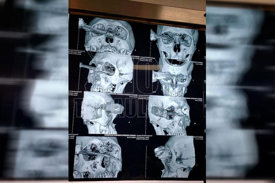 Los médicos especialistas le tomaron las radiografías previo a la cirugía y en ellas se observa que el arma atravesó el cráneo, entrando por el ojo izquierdo, atravesó la nariz y alcanzó la cuenca del ojo derecho
