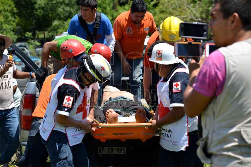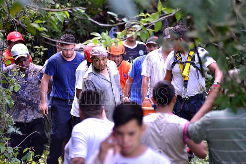 Don José pasó la noche al fondo del caño con golpes en la cabeza y en varias partes del cuerpo y fue gracias a que sus hijos Bladimir y Osvaldo, que pudieron bajar para darle comida y con palos y ramas lograron hacerle un techo para resguardarlo de la lluvia mientras era rescatado