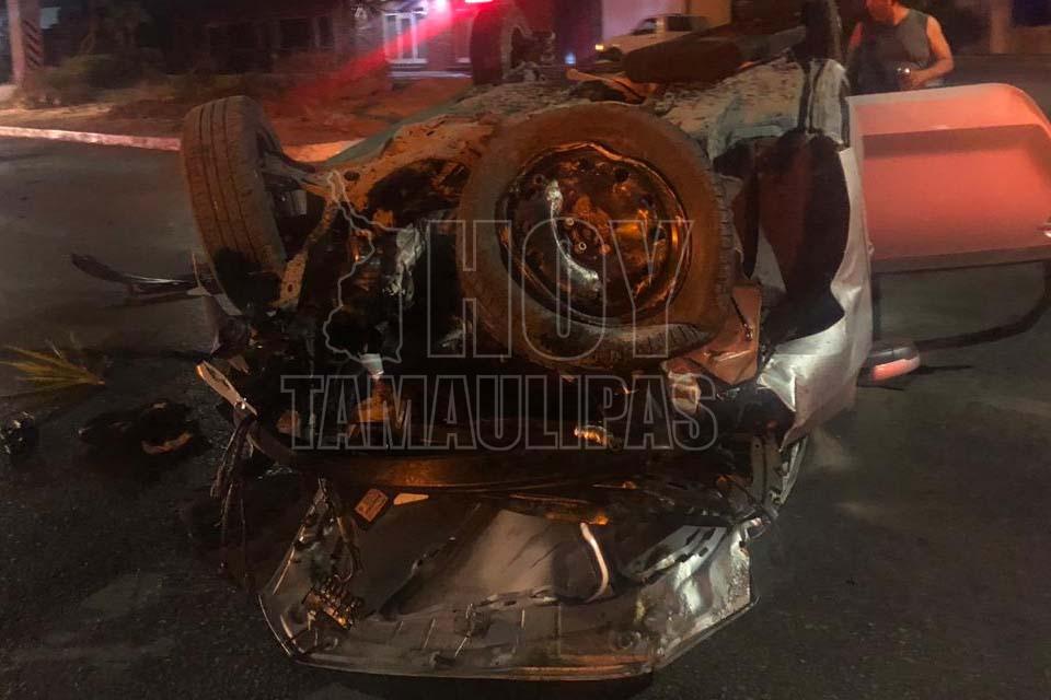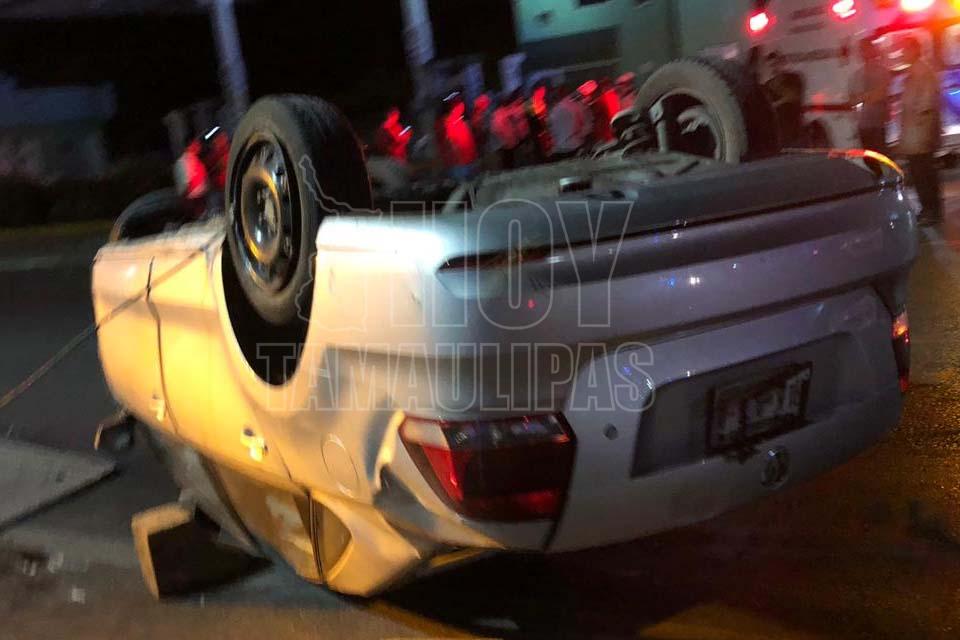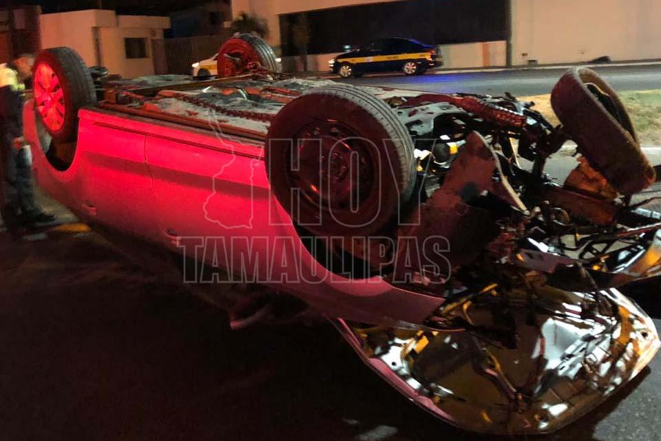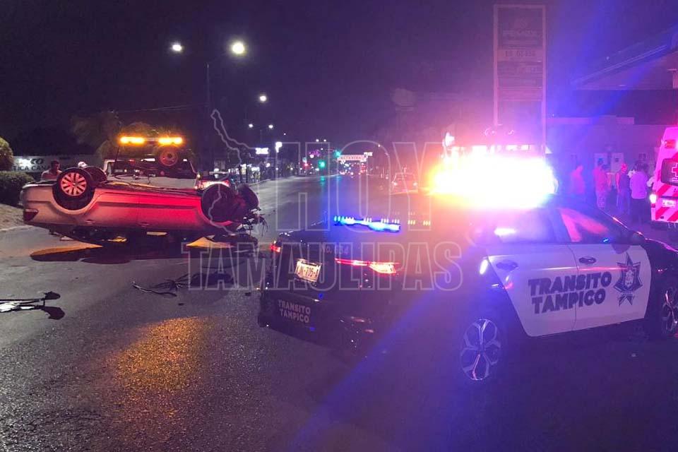 En la divisoria de Tampico y Altamira, un sujetó se impactó contra un muro de contención el cual provocó que el vehículo volcara