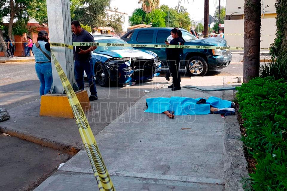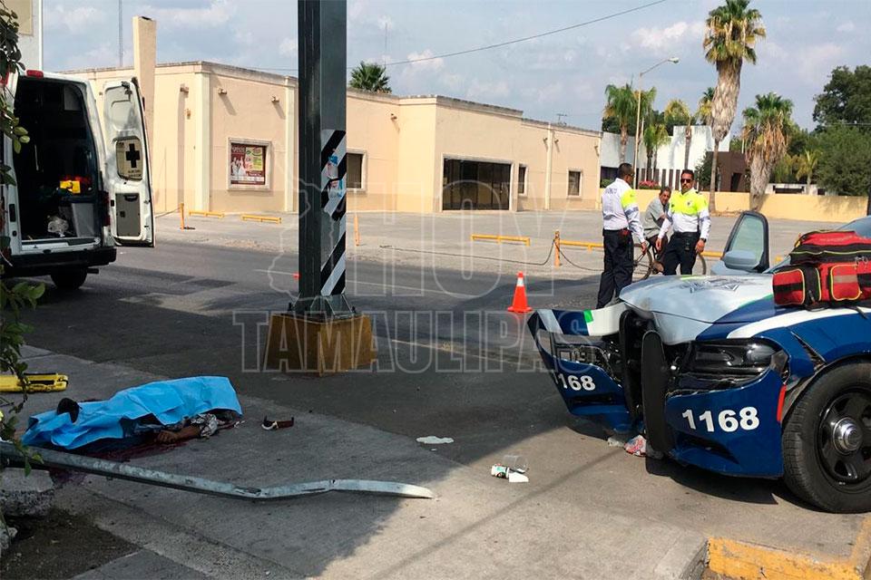 Un hombre falleció prensado contra una palma luego de suscitarse un choque entre una patrulla Policía Estatal de Proximidad y una camioneta particular, en calles de la colonia Morelos de Nuevo Laredo