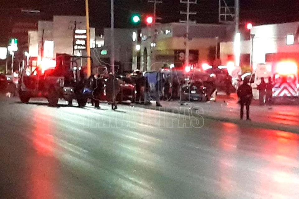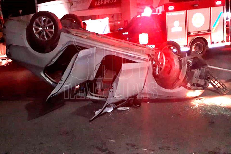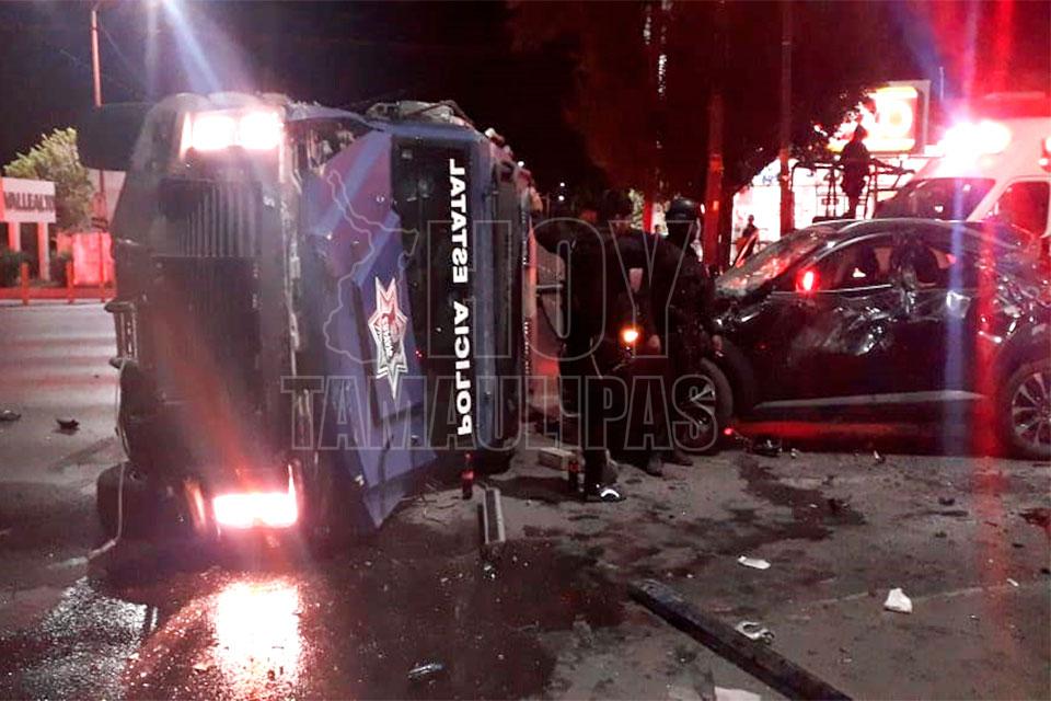 Al menos ocho personas lesionadas fue el saldo que dejó esta noche un choque con volcadura en el Bulevar Hidalgo, tras registrarse una persecución entre elementos policiacos y hombres armados