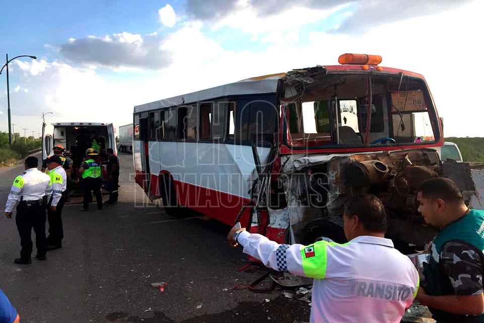 Catorce personas lesionadas, así como daños materiales importantes, dejó como saldo un accidente entre un camión de una maquiladora y un tráiler en el sector poniente de Nuevo Laredo