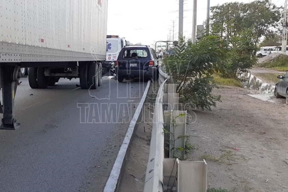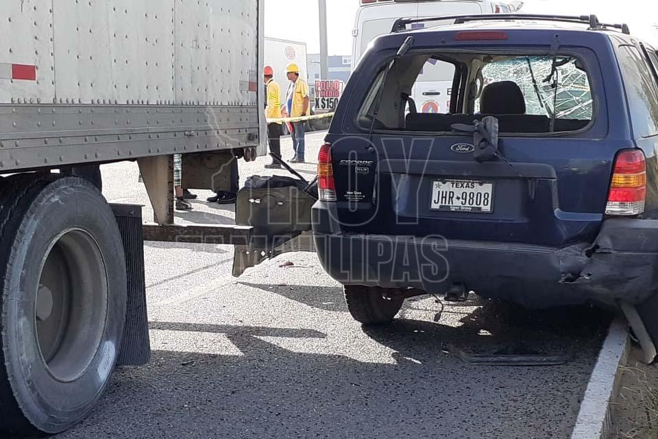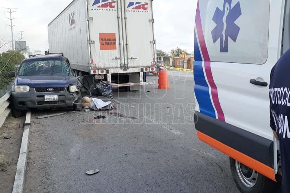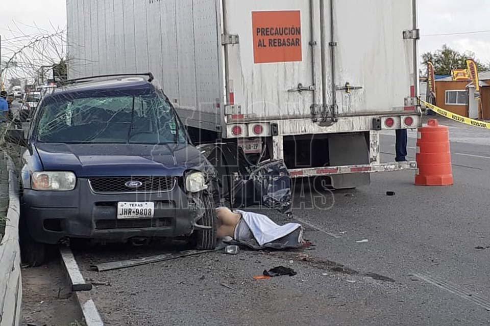 La conductora de una camioneta Ford Escape intentó rebasar a un tráiler, pero fue impactada por la pesada unidad, teniendo una muerte instantánea