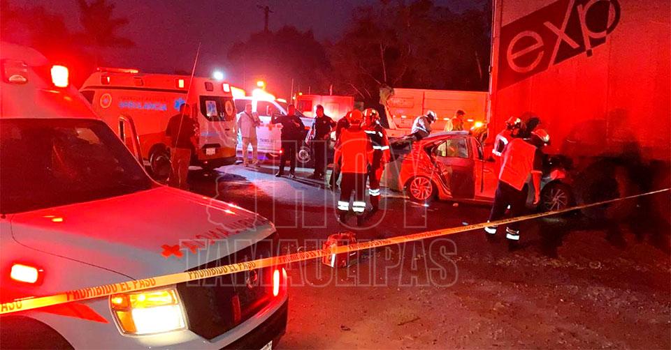 Una persona muerta y dos más lesionadas fue el saldo de un accidente de tránsito registrado esta madrugada en el kilómetro 36 de la carretera Victoria-Monterrey, a la altura del Poblado El Barretal en Hidalgo