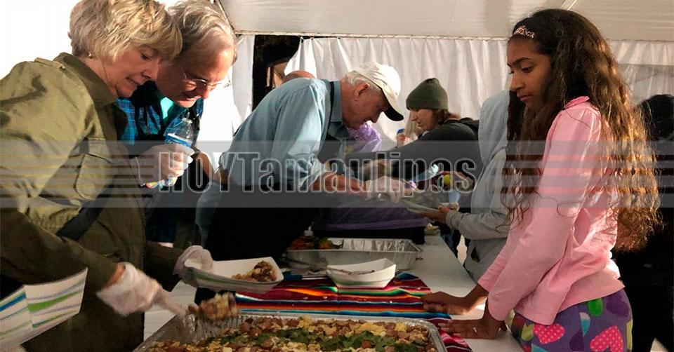 La noche de este lunes comenzó a operar el comedor que la organización World Central Kitchen instaló en el campamento, con la finalidad de que los migrantes contaran con un espacio adecuado para consumir sus alimentos