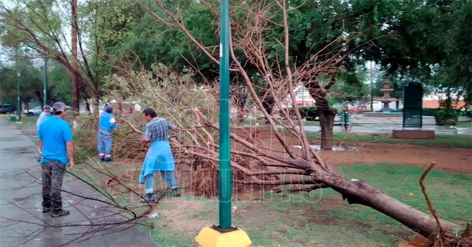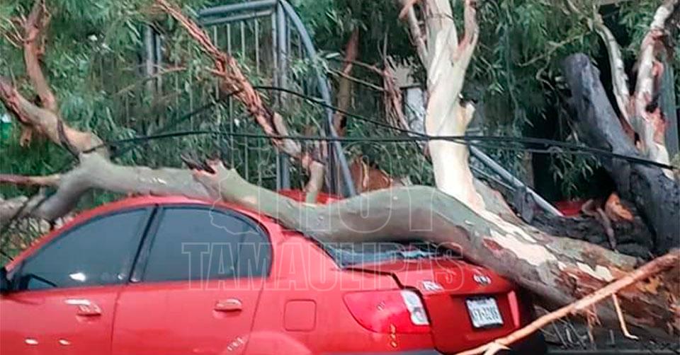 La intensa lluvia por más de una hora ha dejado varías colonias bajo el agua; las rachas de viento voltearon puestos de comida y hasta tinacos de las vienesas salieron volando