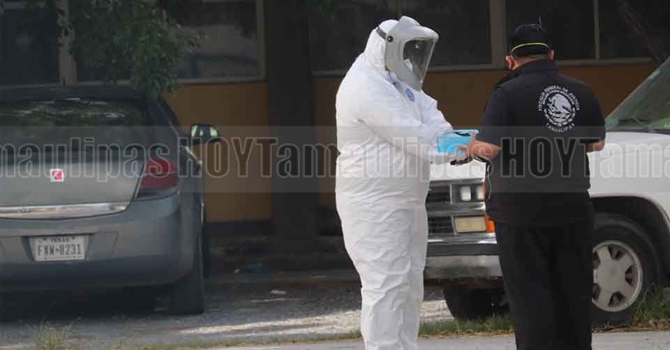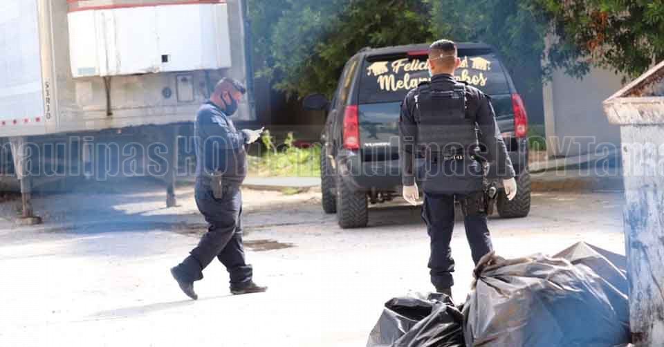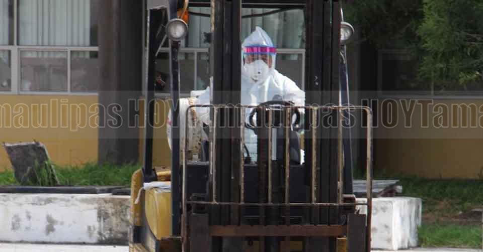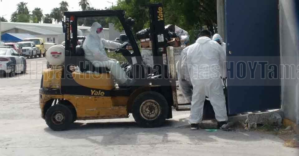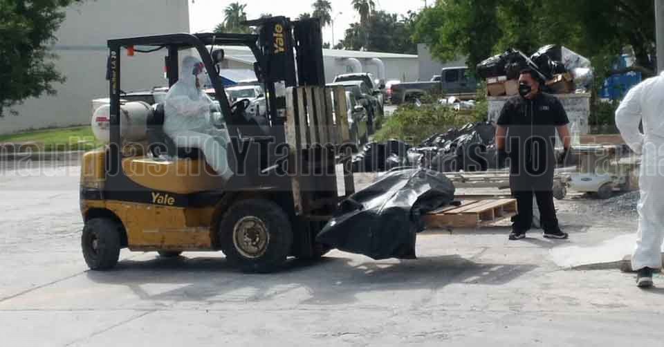 Cinco cuerpos de personas que fallecieron por Covid-19 fueron colocados en la caja refrigerada que se instaló en el patio trasero del Hospital General de Matamoros para albergar los restos