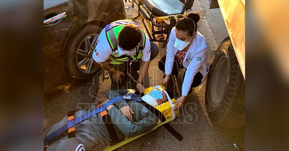 Al lugar arribaron paramédicos para auxiliar al maestro y con la ayuda de una doctora del IMSS, que dijo ser familiar del lesionado, lo abordaron a una ambulancia para llevarlo a una clínica particular