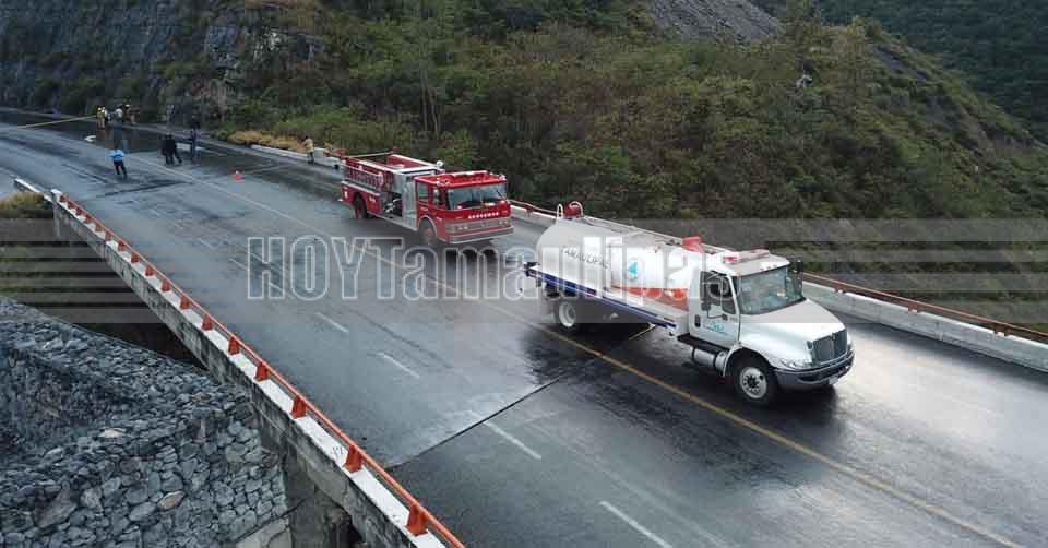 La carretera Rumbo Nuevo permanecerá cerrada por al menos ocho horas, debido al derrame de más de 30 mil litros de gasolina de una pipa que chocó