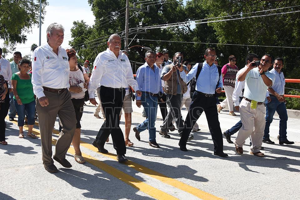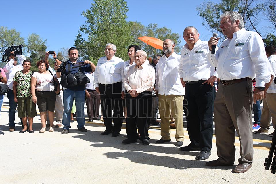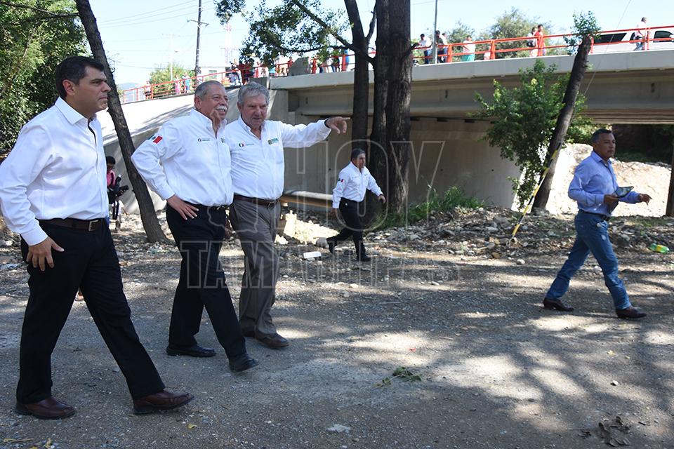 Autoridades de gobierno de Tamaulipas acompañaron al gobernador, Egidio Torre Cantú al corte de listón en el Puente vehicular de la Calle Río Frío sobre el Río San Marcos en Ciudad Victoria