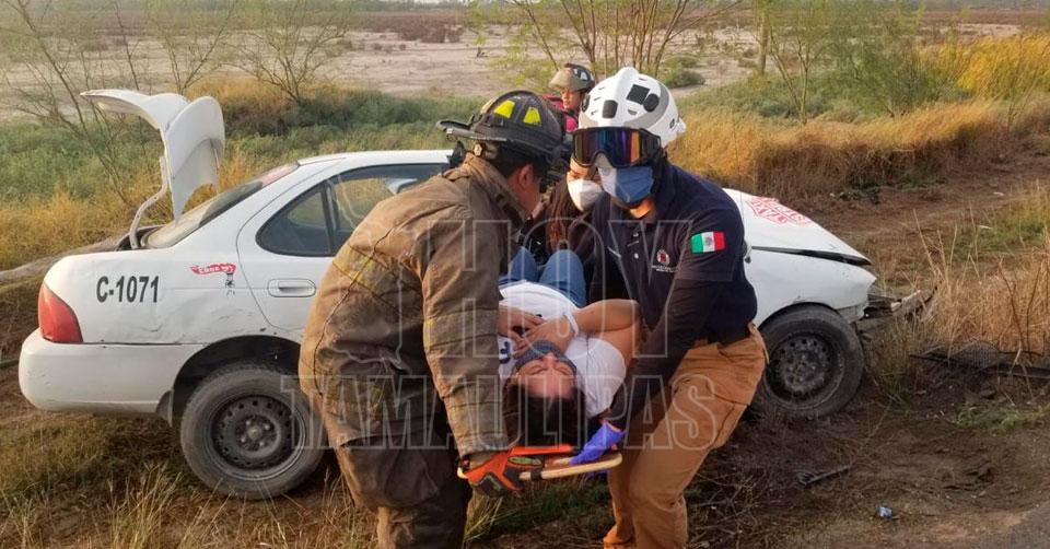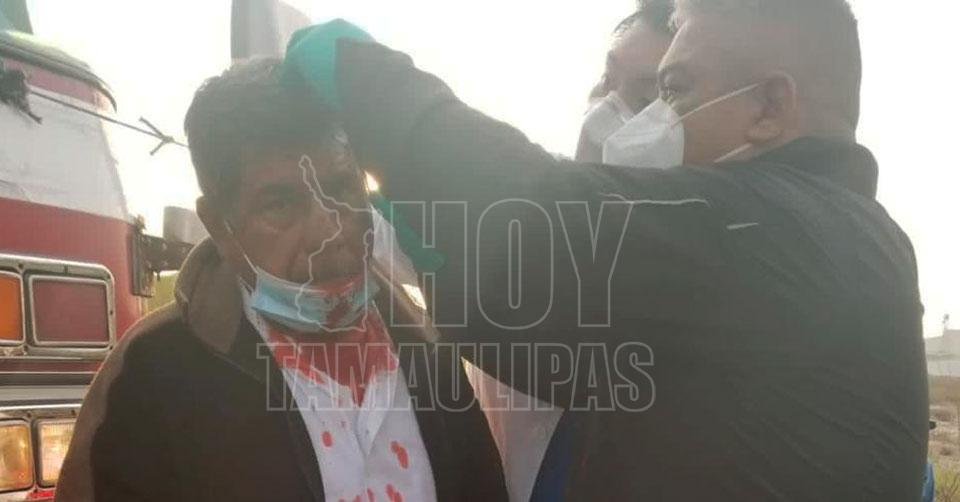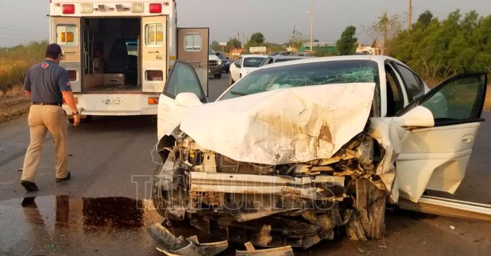Paramédicos rescatan a involucrado en el accidente registrado esta mañana en Matamoros, Tamaulipas.