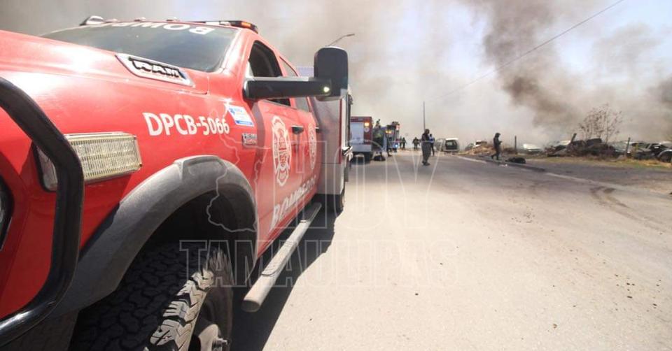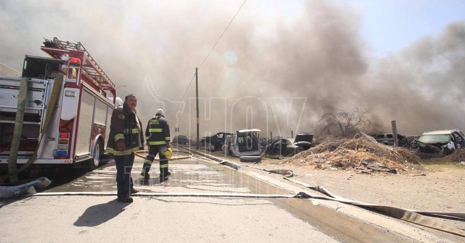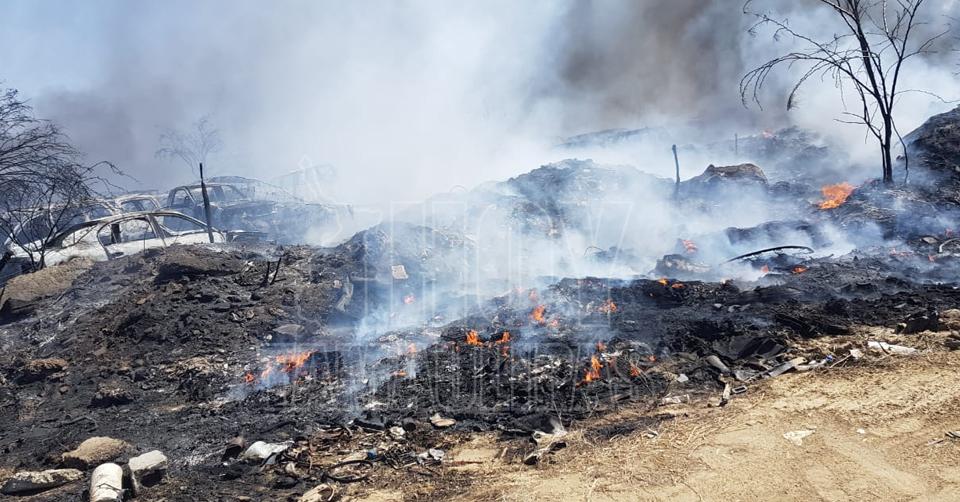 Al menos 400 vehículos quedaron destruidos al registrarse un incendio en cuatro yonkes