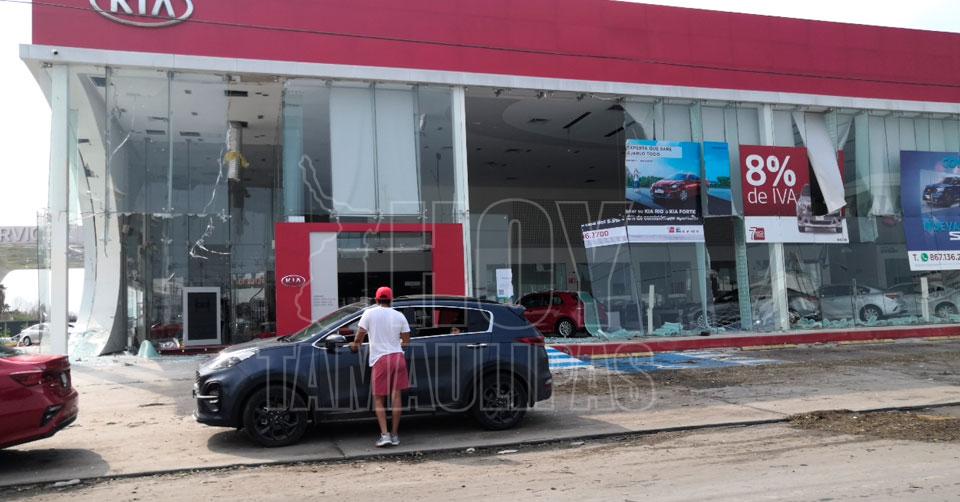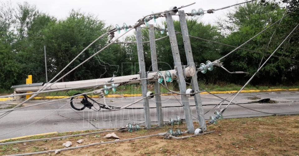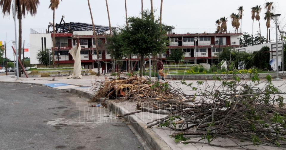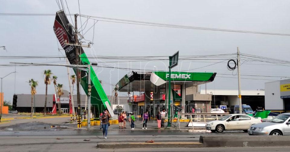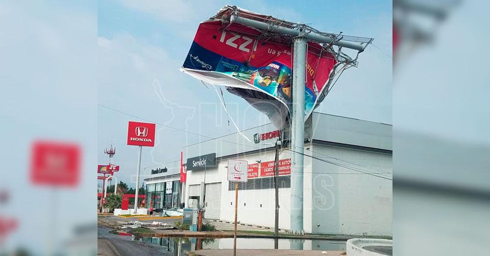 La fuerte tormenta con vientos de más de 150 kilómetros por hora que se registró durante la madrugada ocasionó destrozos en comercios, árboles, anuncios espectaculares y postes de la CFE