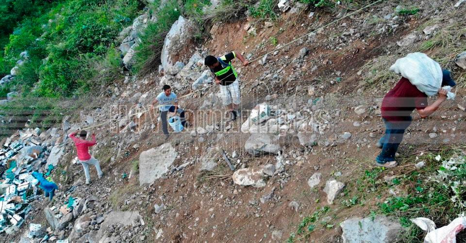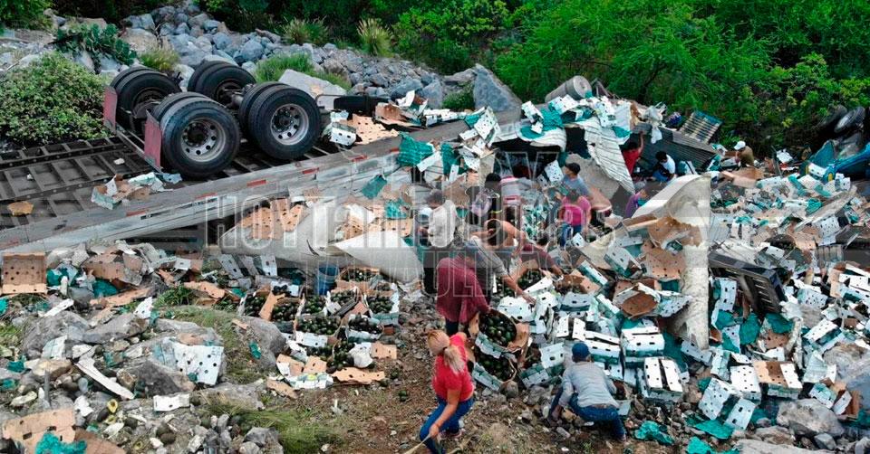 Cerca de las 04:00 horas comenzaron a llegar cientos de lugareños y con botes y costales comenzaron a rapiñar la carga