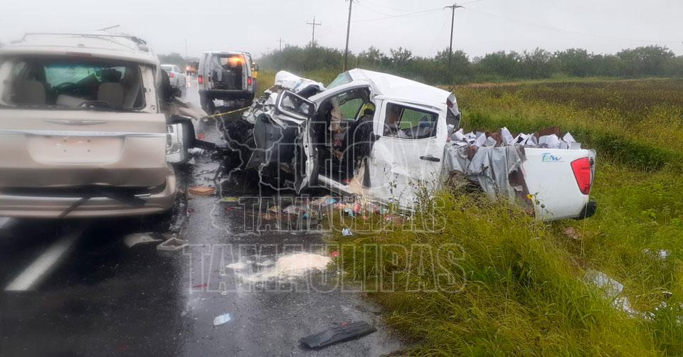 Un fuerte accidente carretero ha dejado hasta ahora como saldo un empleado del DIF de San Fernando sin vida, uno más del estatal gravemente lesionado y el conductor de otra unidad con graves lesiones