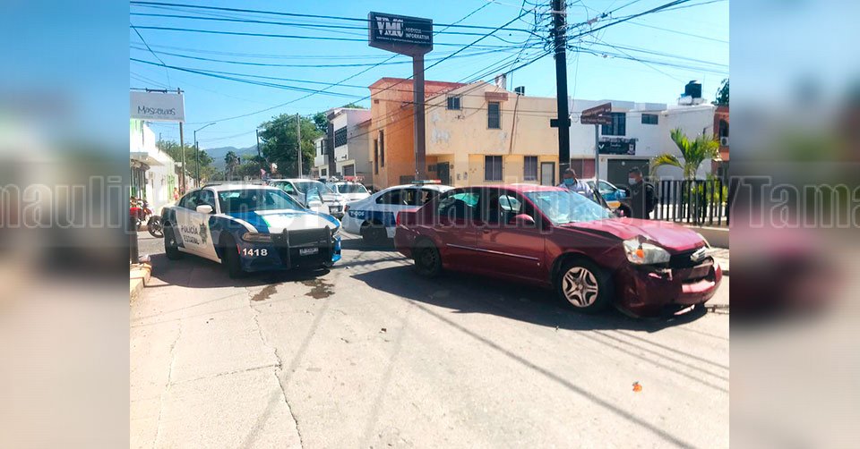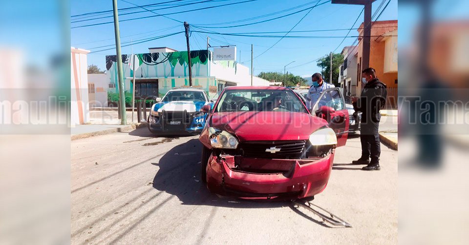 Un elemento de la Policía Estatal guiaba la unidad en dirección de oriente a poniente por la calle Abasolo, sin embargo, al llegar a la calle 21 omitió el alto correspondiente y chocó contra un Chevrolet tipo Malibu que conducía una mujer