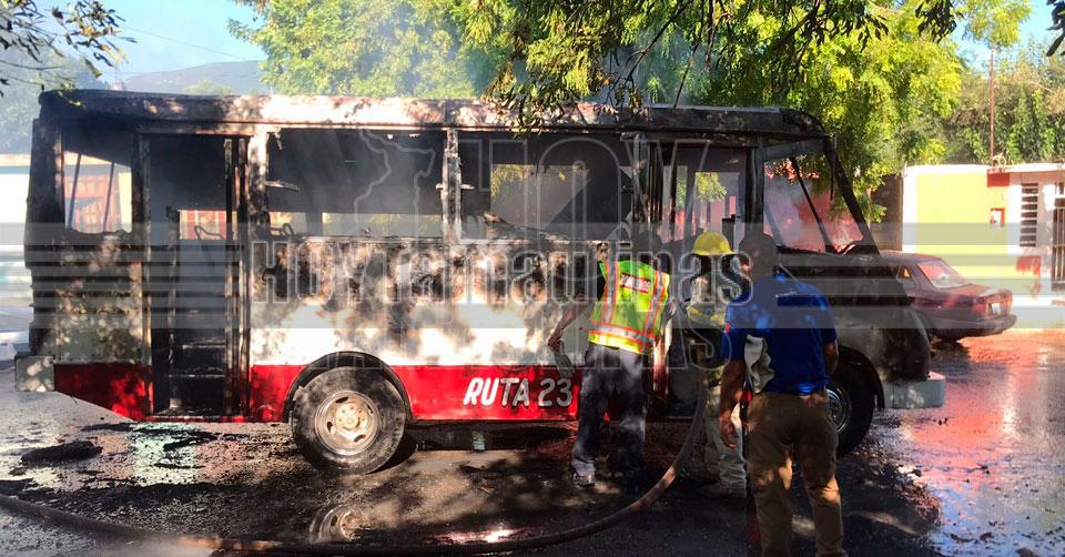 Un microbús de la Ruta 23 terminó en vuelto en llamas luego de que dos sujetos que, según testigos, asaltaron al chofer y bajaron a los pasajeros para después prenderle fuego a la unidad