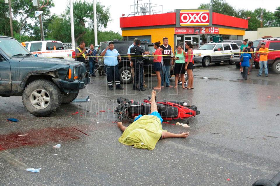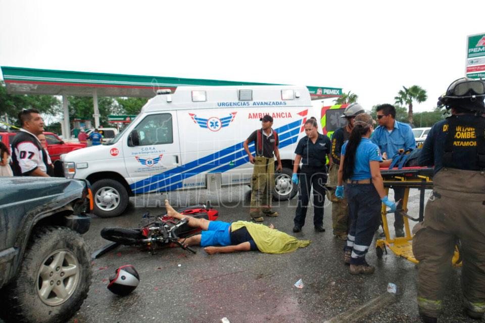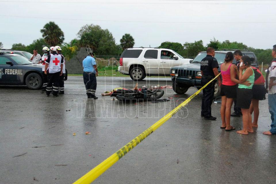 El conductor de una motocicleta murió de forma instantánea, cuando al circular por la carretera a la Playa Costa Azul de Matamoros se impactó contra una camioneta que se le atravesó