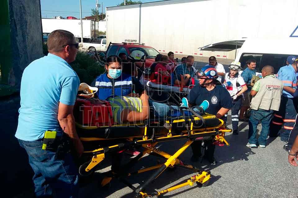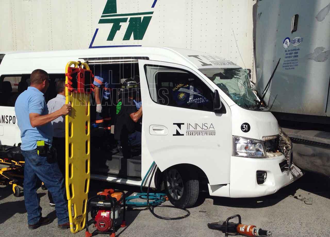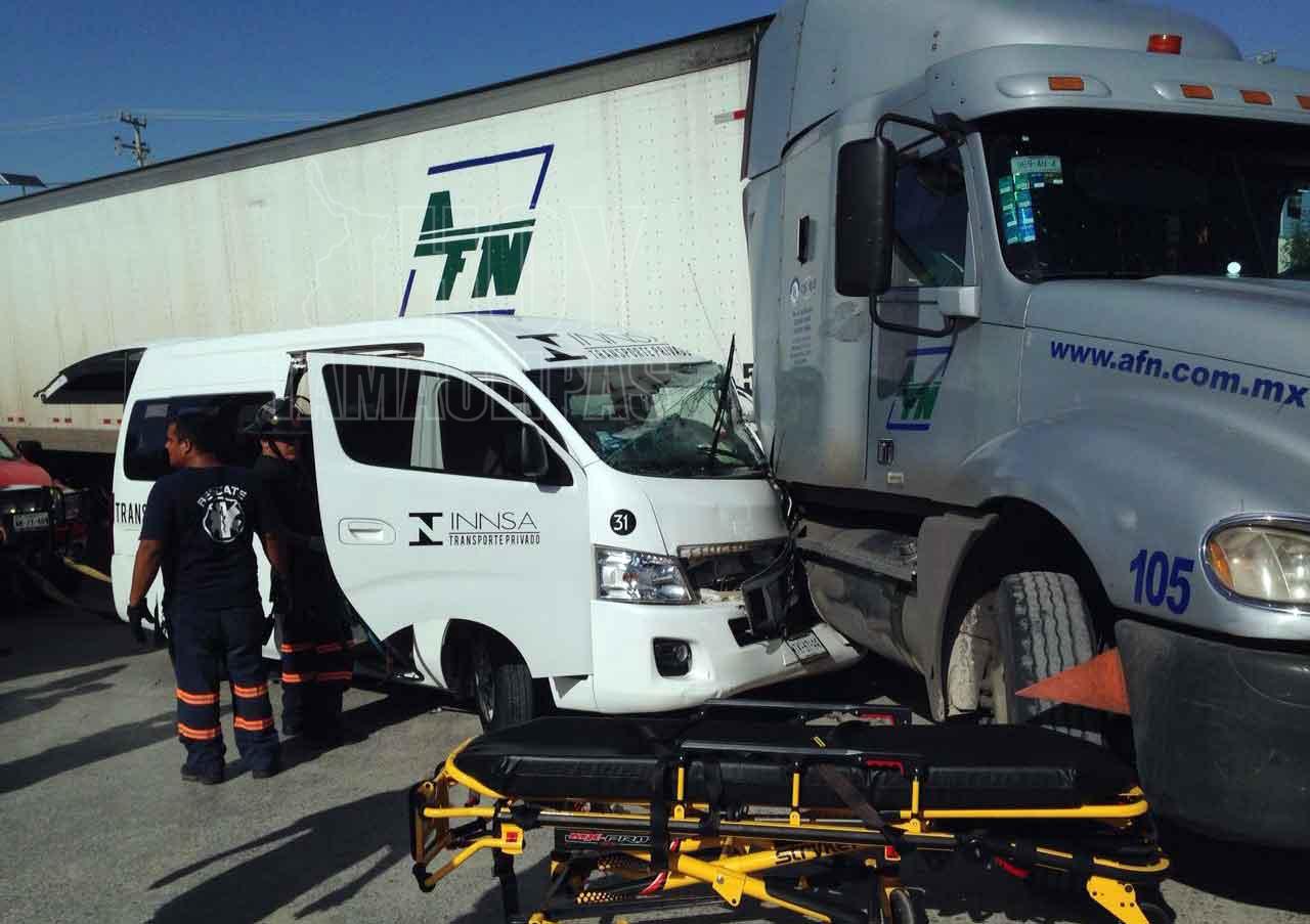 Un total de diez personas resultaron heridas en un accidente de tránsito, entre una camioneta de transporte de personal y un tráiler en Nuevo Laredo