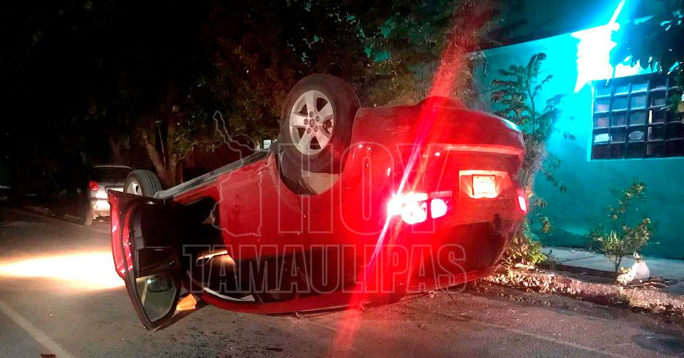 La unidad Dodge Journey quedó volcada sobre la calle Mutualismo en la colonia Mainero, hasta donde llegaron paramédicos de la Cruz Roja para valorar al lesionado