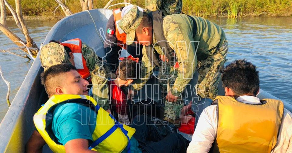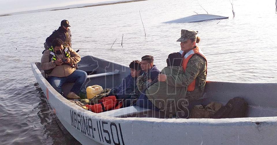 En un islote de la Presa Vicente Guerrero, los infantes de Marina y elementos de Protección Civil, localizaron a un padre y sus dos hijos que ayer naufragaron; falta una cuarta persona