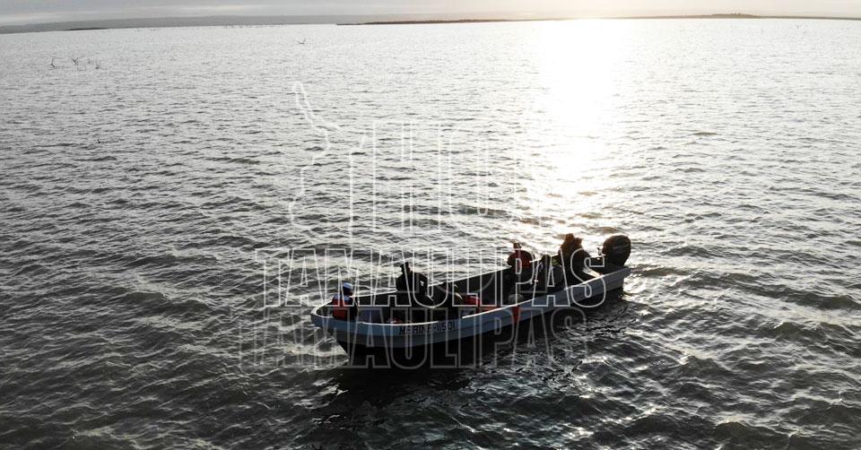Elementos de Marina y de Protección Civil en búsqueda de las personas que ayer habían naufragado en la Presa Vicente Guerrero