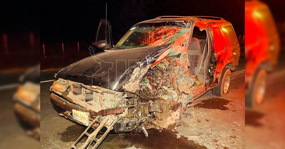 Presuntamente invadió carril a un tráiler y se produjo el impacto, lo que provocó que el tracto camión se saliera de la carretera resultando el chofer ileso