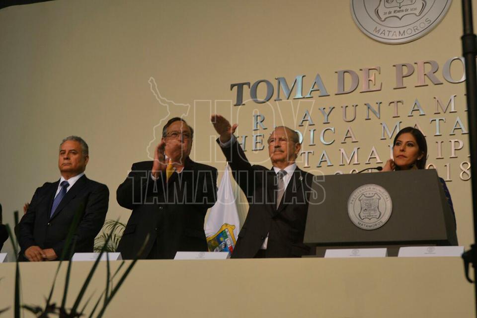 Ante la presencia de más de seis mil personas, Jesús de la Garza Díaz del Guante protestó como nuevo presidente municipal de Matamoros