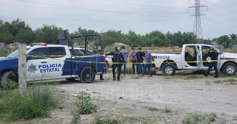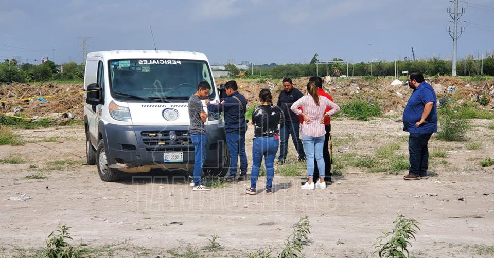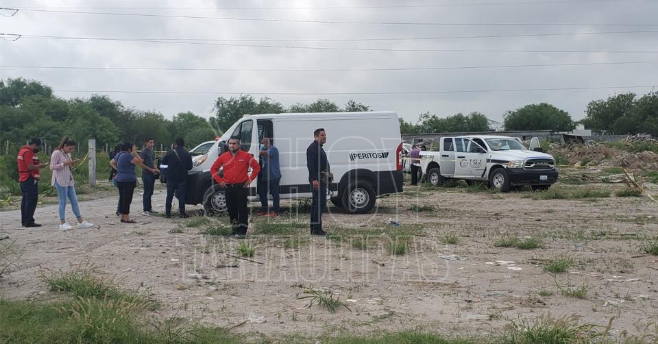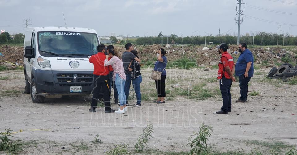 Familiares y elementos de seguridad del estado en el lugar donde fue encontrado el cuerpo del obrero asesinado a golpes en Reynosa